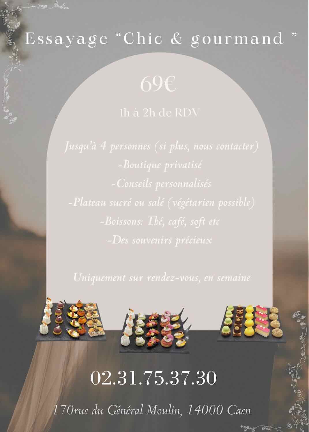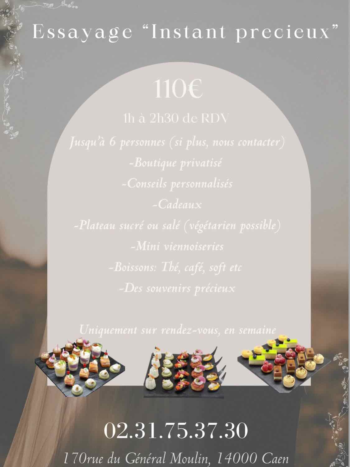 Réponse : L’expérience est pensée pour prendre votre temps ! La durée de votre essayage privé est de 1h à 2h ou 2h30 selon la formule choisie, vous laissant tout le loisir de découvrir les collections et de savourer votre plateau gourmand.